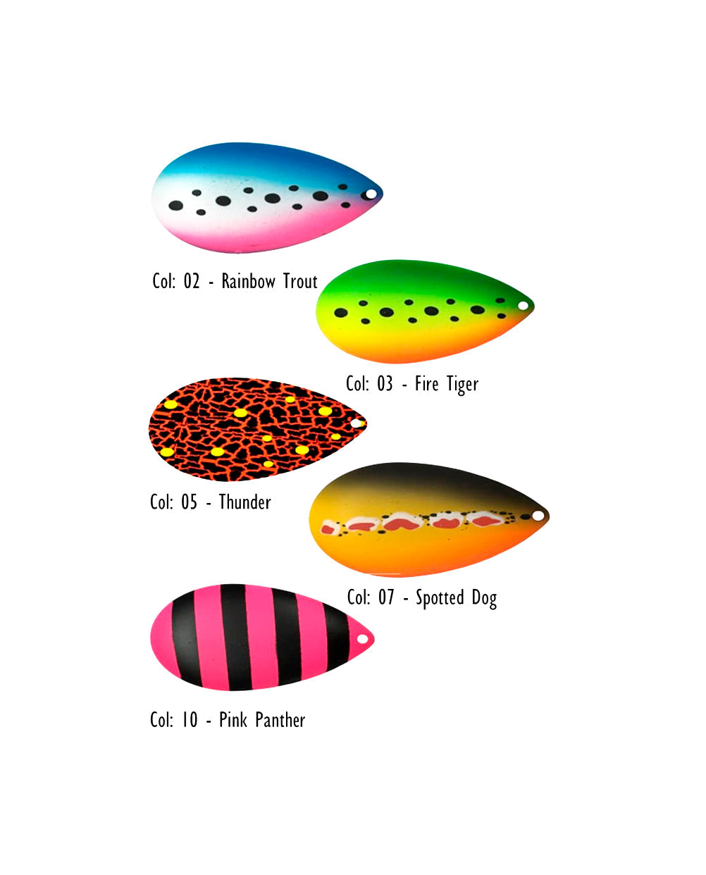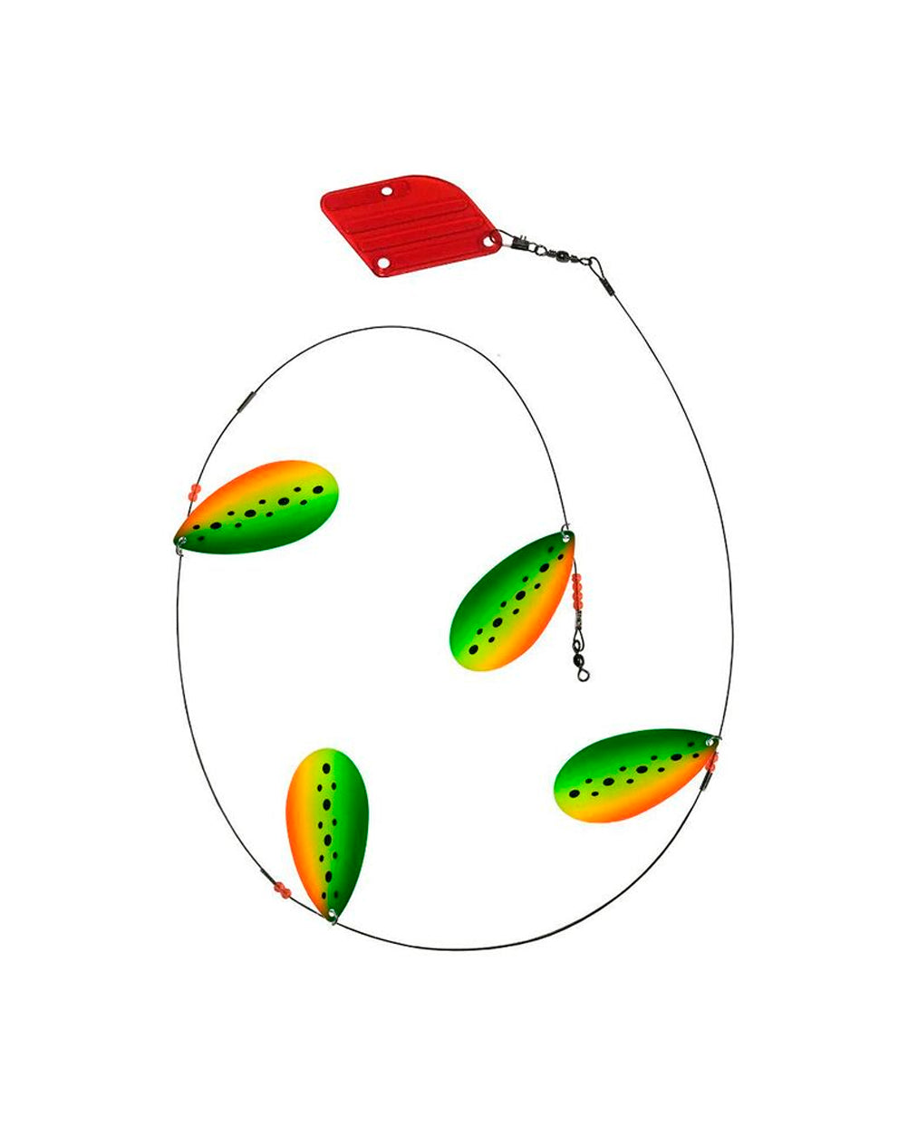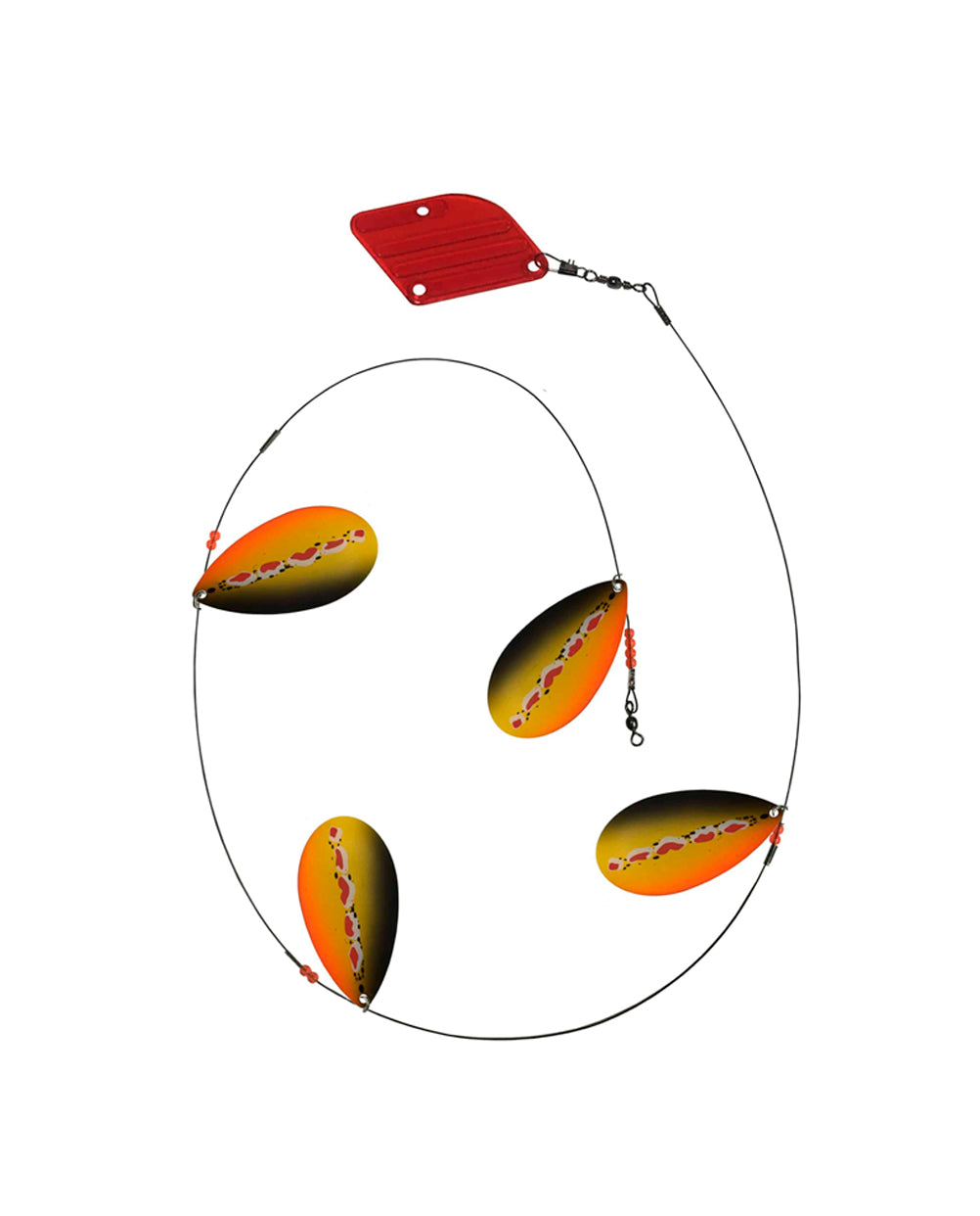 Simulating a school of fish. this trolling attractor is a classic design. The Cow Bell's flashing blades attract Trout to your lure from a distance.